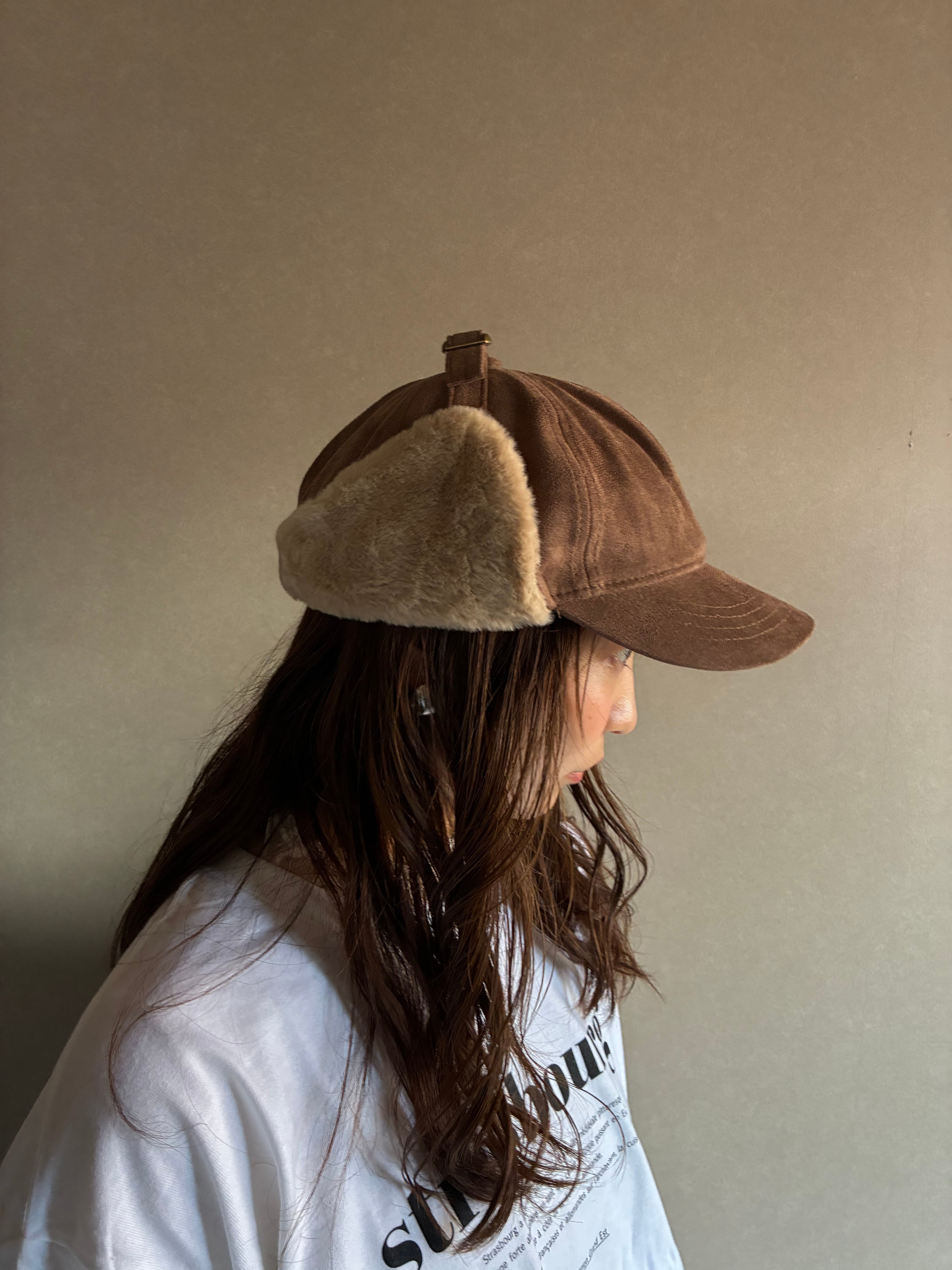 スエード素材がとってもかわいいフライトキャップ。