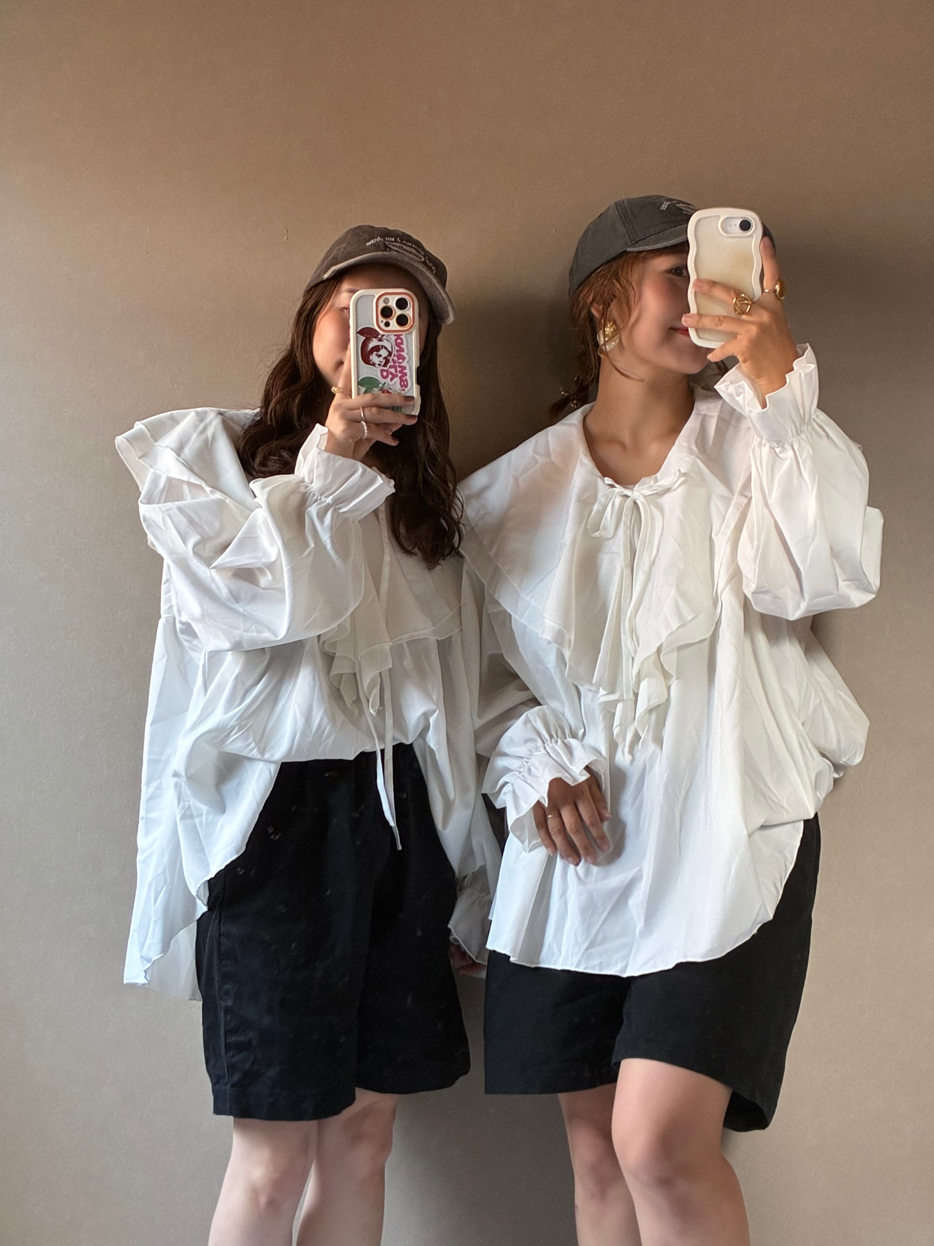 お尻も隠れて、なにより一気におしゃれになります。ボリュームたっぷりのフリルだけど、ボトムスで甘さ調節すれば、着方は無限大です。