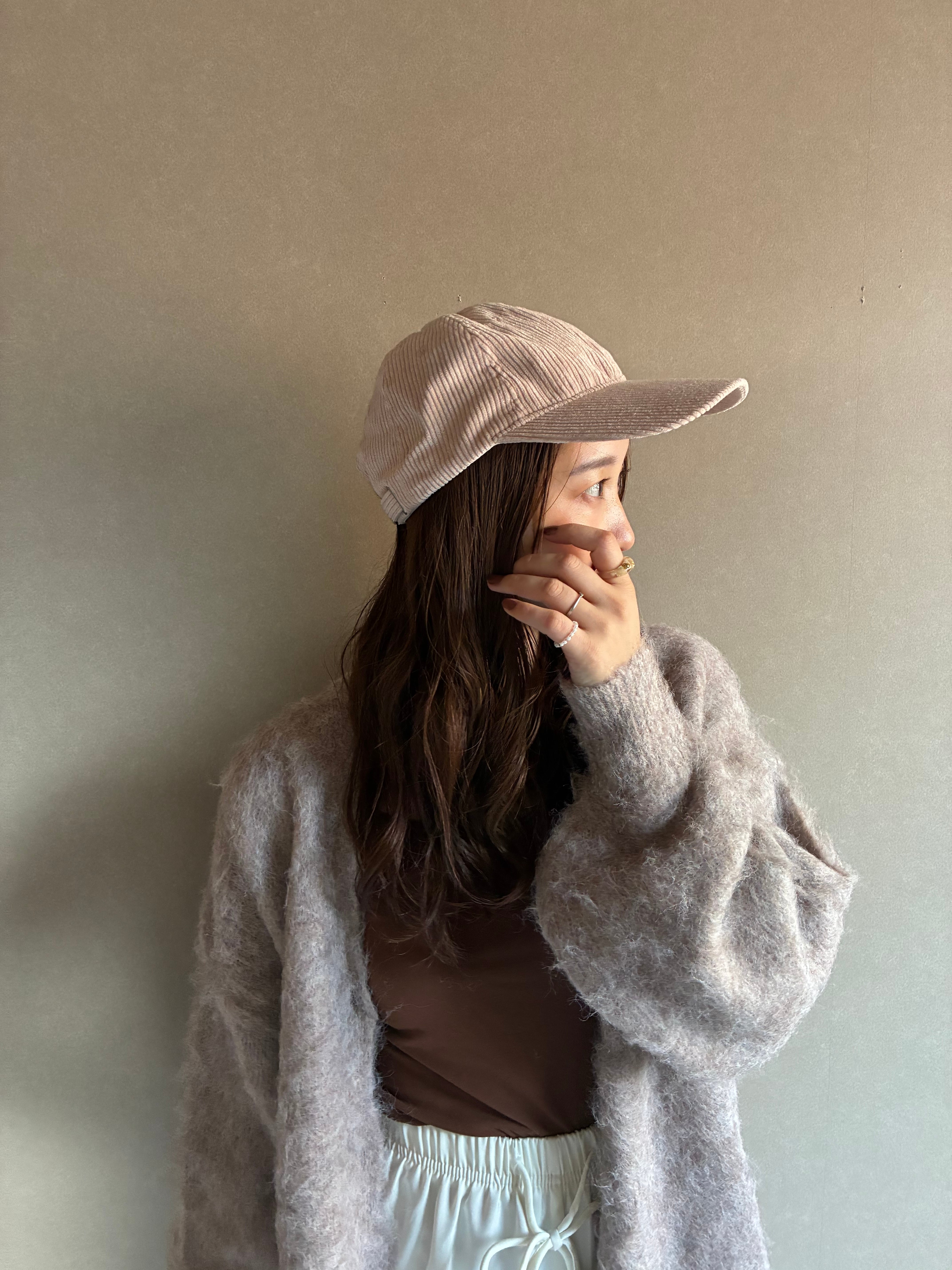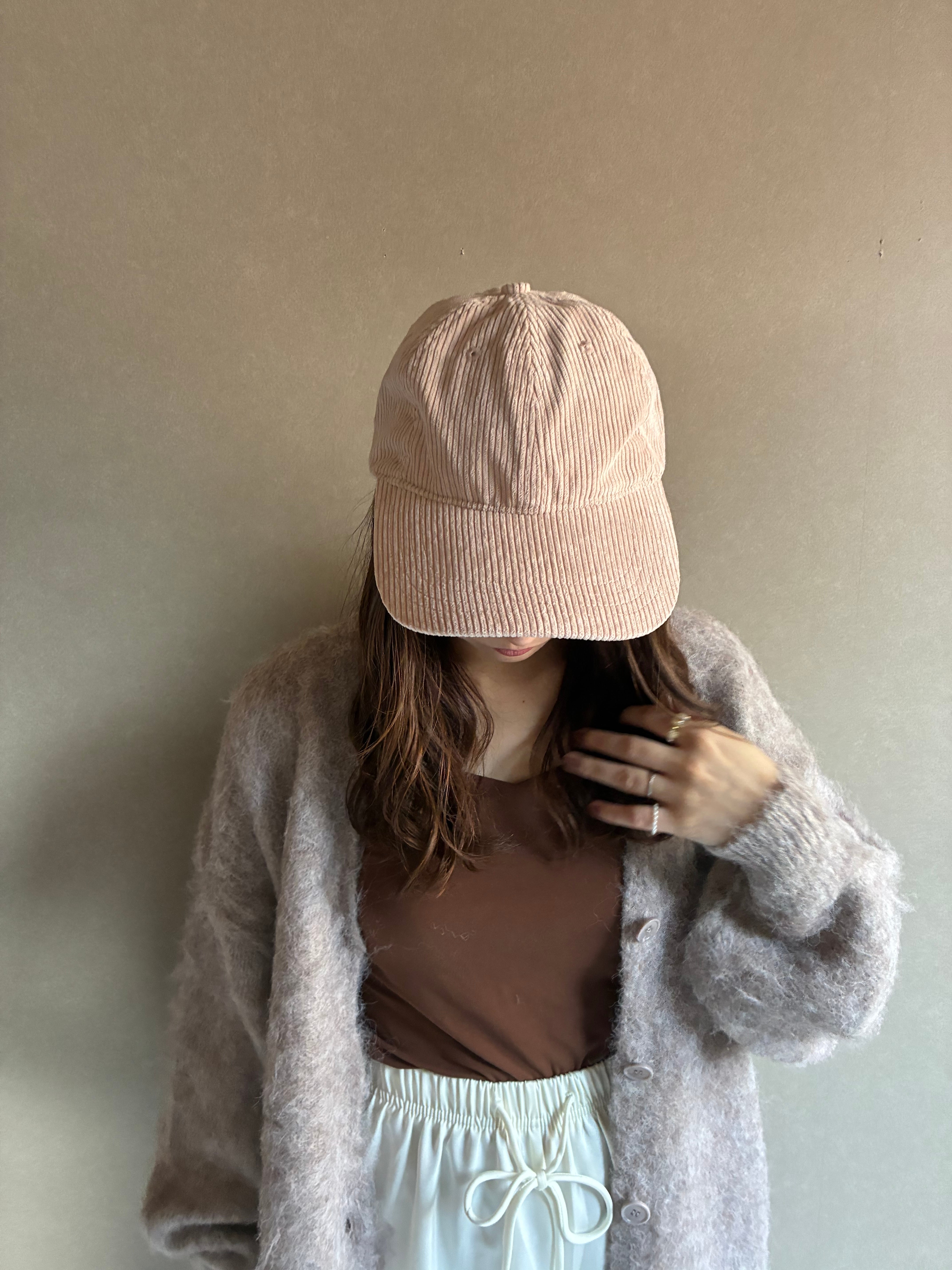 薄手のコーデュロイキャップは、秋にぴったりです。